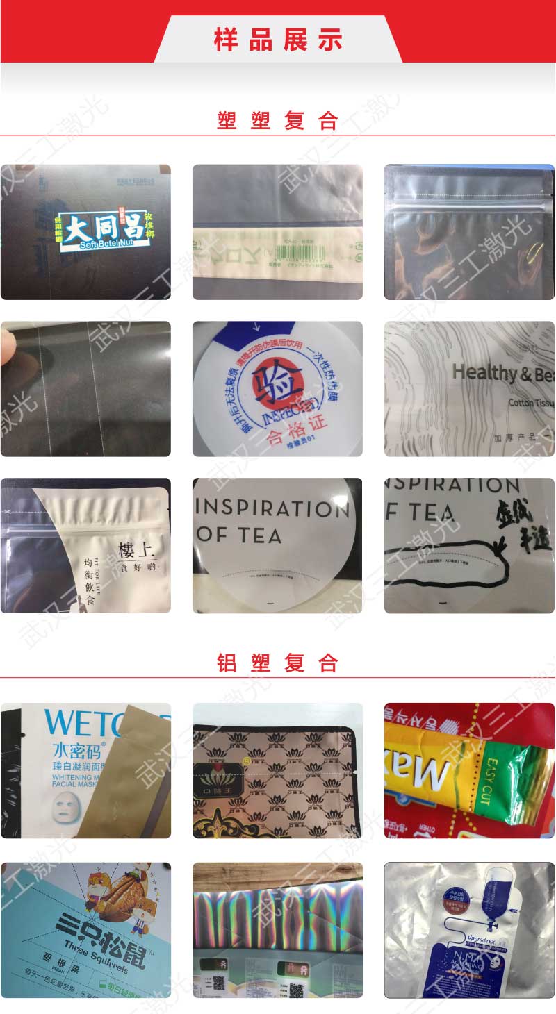 該設(shè)備適用于食品印刷包裝、飲料熱封標(biāo)簽、醫(yī)藥外包、日用化妝品、收縮膜等多種薄膜行業(yè)的定量透氣孔、易撕口、熱封標(biāo)簽激光標(biāo)刻。
