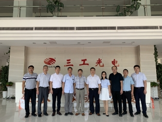2020年9月2日山東省臨沂市國有資產投資控股集團有限公司黨委書記、董事長魯峰武,臨沂經濟技術開發區黨工委委員、管委會副主任楊振魁 等一行考察團蒞臨武漢三工光電設備制...